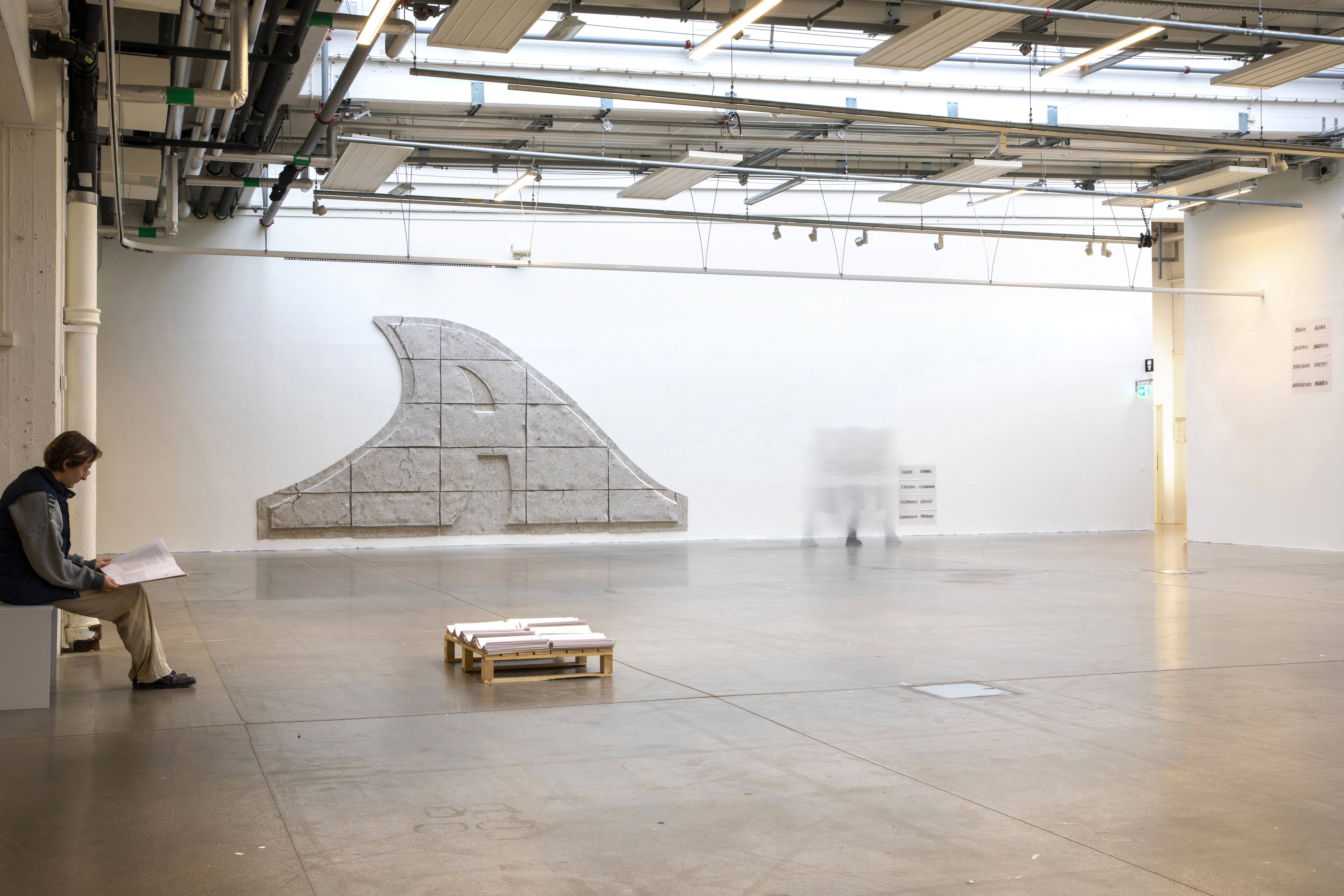 Transfer / Överräckning is both a graphic print when unfolded (a list of frottaged words found on recreational vehicles) and a folded pamphlet for the viewer to bring home. The text is written by Oskar Enetjärn, developed from a joint discussion about the role of the Road in language. In the four short stories, different types of journeys are played out: a transformation of a tissue paper, a description of (our) collaboration, a tracing of a word (Väg) and a coming-of-age road trip.
